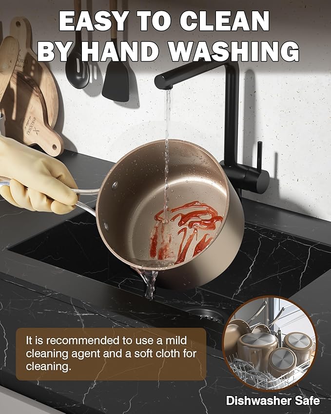 - HIGH QUALITY CERAMIC - The interior of sauce pan is complemented by a high-quality ceramic layer, which can prevent food from sticking and reduce the use of oil; The ceramic layer provides excellent heat retention, enabling precise temperature control.