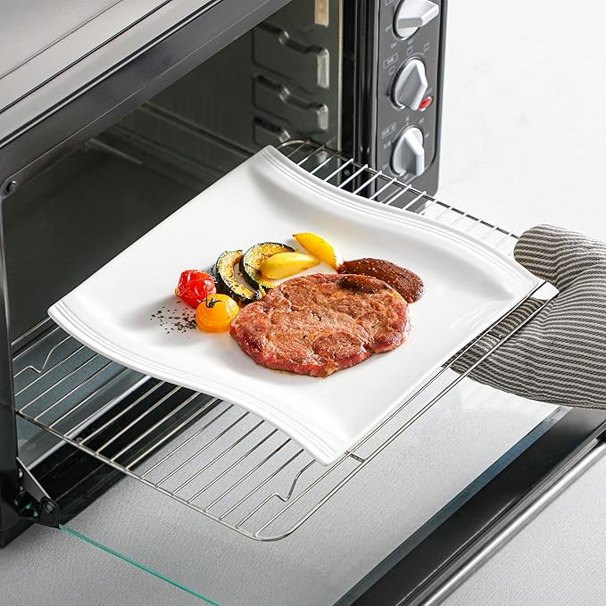 - Durability & Safe - Crafted from premium porcelain, our ceramic dinnerware sets boast unparalleled strength and safety. Fired at temperatures ranging from 1200°C to 1400°C, ivory white plates set are lead-free and non-toxic, safe in microwave, oven, and dishwasher.