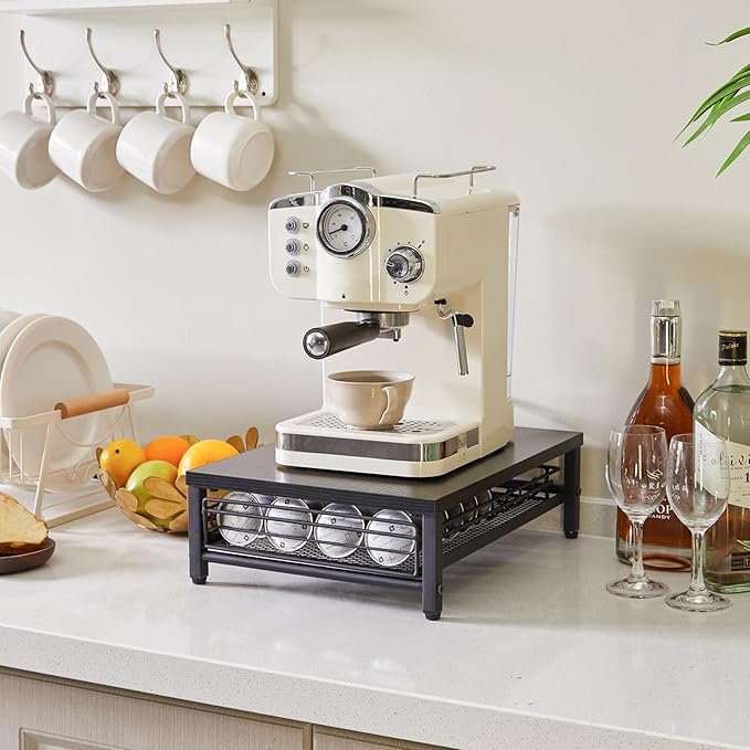 - 【STURDY AND SIMPLE DESIGN】: The capsule pods storage organizer gives your quality coffee a quality storage. This coffee pod holder is firm and space saving. You can also put your coffee brewer or coffee maker on its large top surface.