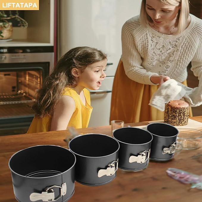 - 【Multi-Use】This springform cheesecake pan is perfect for baking delicious cakes easily. Four-tier pan set has different cake tin sizesfor perfectly baking cheesecake, brownies, deep dish pizza, birthday cake, wedding cake, lasagna, casserole, and quiche.