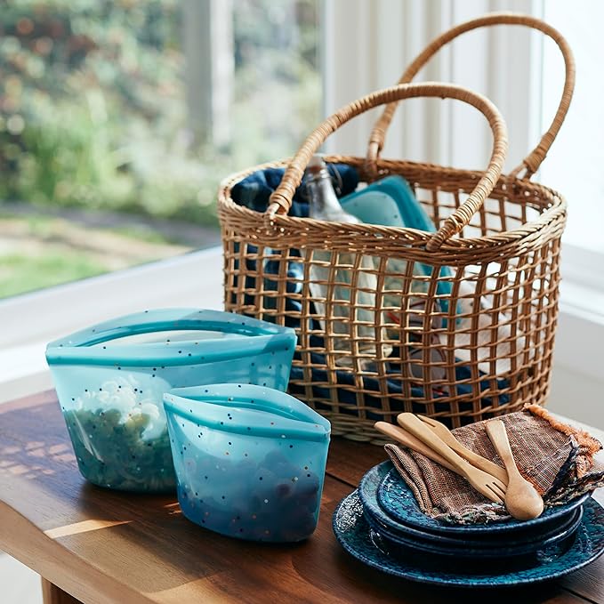 - REUSABLE, REWASHABLE CONTAINERS: Stasher silicone reusable storage bags make it easy to ditch single-use plastic and meet endless household needs. Safe for the dishwasher, microwave, oven (up to 425°F), and more.