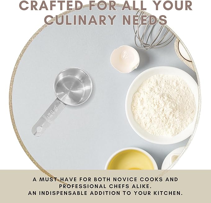 - Versatile Usage - This 1/4 cup stainless steel measuring cup is designed for more than just baking and cooking. Use it to measure dry goods like flour, sugar, oats, or grains, as well as liquids like milk, oil, and broth. It also serves as a reliable dog food scoop, perfect for portioning dry kibble or bird seed. Durable enough for sticky ingredients and dense materials, this measuring cup is an all-in-one solution for home kitchens, meal prep, or pet care routines.