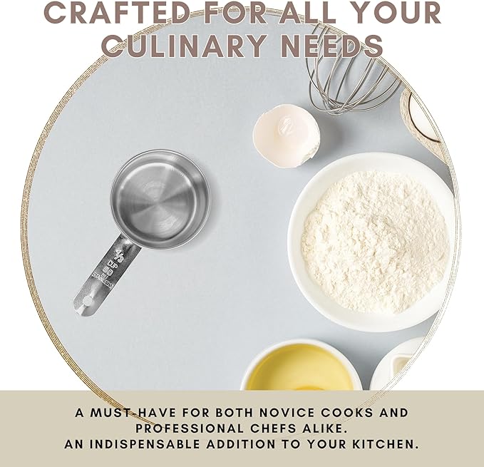 - Versatile Usage - This 1/3 cup stainless steel measuring cup is designed for more than just baking and cooking. Use it to measure dry goods like flour, sugar, oats, or grains, as well as liquids like milk, oil, and broth. It also serves as a reliable dog food scoop, perfect for portioning dry kibble or bird seed. Durable enough for sticky ingredients and dense materials, this measuring cup is an all-in-one solution for home kitchens, meal prep, or pet care routines.