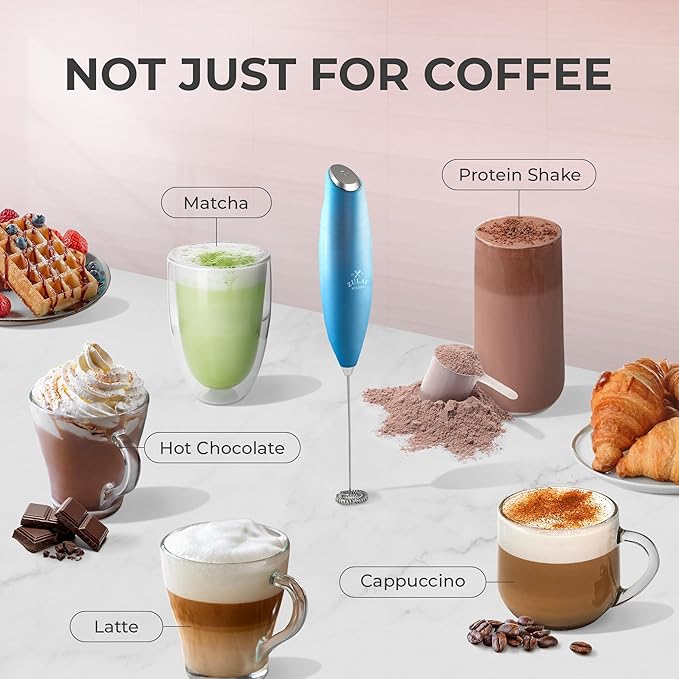 Zulay Kitchen Milk Frother Handheld Electric Whisk with AA Duracell Batteries – Durable Drink Mixer for Coffee, Lattes, Cappuccinos & More - Metallic Blue