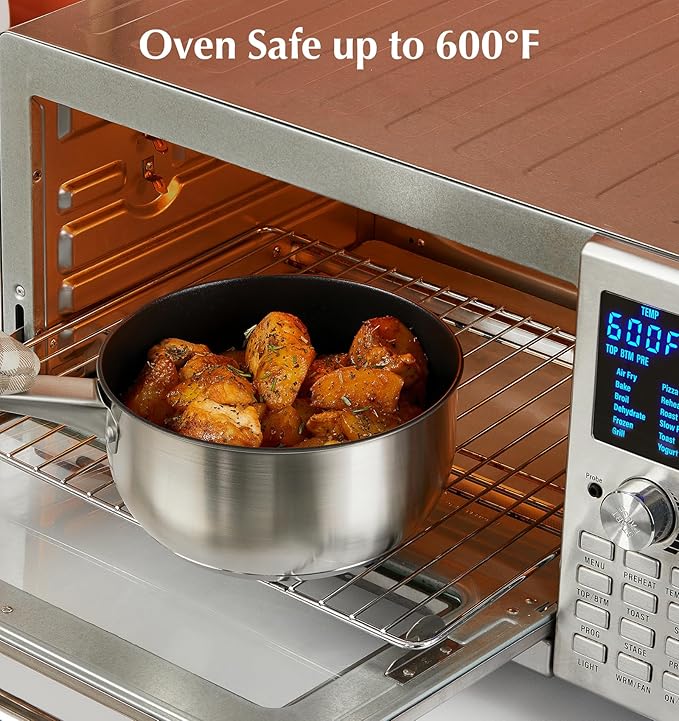 - Ultra Nonstick & Healthy Interior: Our stainless steel saucepan boasts a nonstick coating free from APEO and PFOA, ensuring a healthier cooking experience. Effortlessly pour silky sauces like chocolate or sauce with its exceptional nonstick performance. Enjoy the ease of cooking with our 2 quart saucepan.