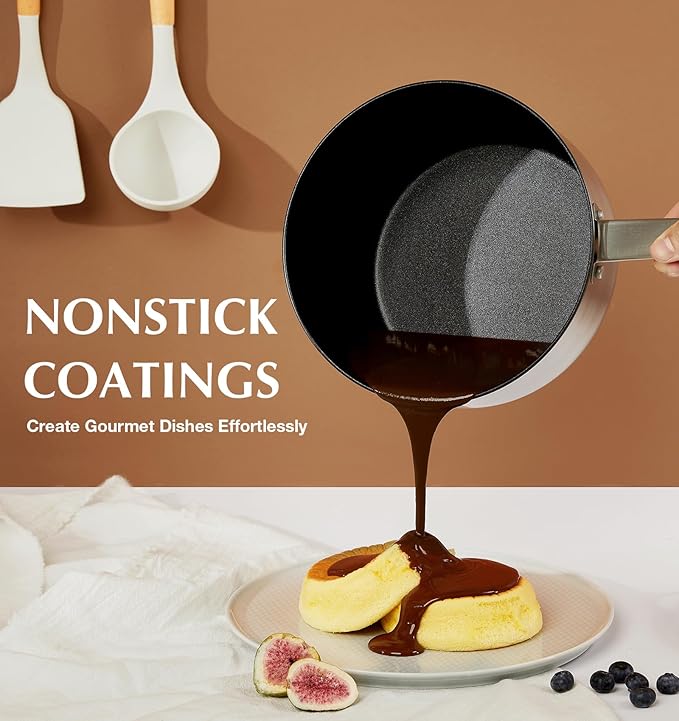 - Ultra Nonstick & Healthy Interior: Our stainless steel saucepan boasts a nonstick coating free from APEO and PFOA, ensuring a healthier cooking experience. Effortlessly pour silky sauces like chocolate or sauce with its exceptional nonstick performance. Enjoy the ease of cooking with our saucepan set.