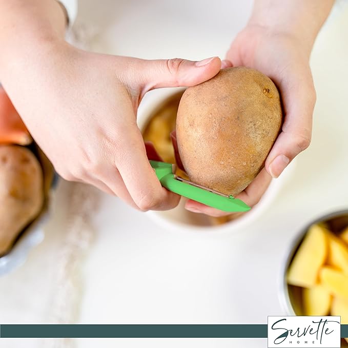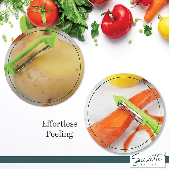 - Effortless Peeling: These peelers allows you to easily remove skins from fruits and vegetables with its comfortable non-slip grip and sharp stainless steel blade.