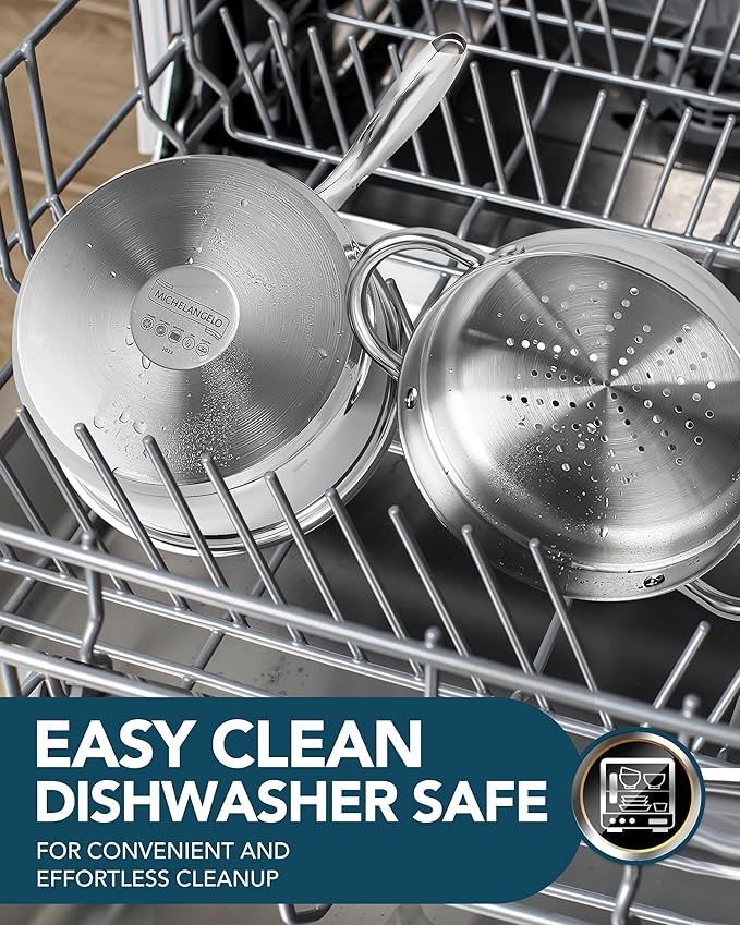 MICHELANGELO 1.5 Quart Saucepan with Steamer, Stainless Steel Saucepan with Lid, Triply Bottom Induction Compatible, Multipurpose Sauce Pot, Dishwasher Safe