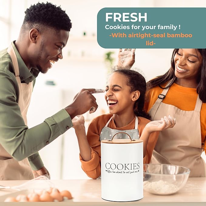 - DURABLE AND LONG-LASTING COOKIE TIN: Built to resist rust and scratches, this cookie jars with lids are made of powder-coated galvanized metal and offers a sleek, modern look with exceptional durability. They are easy to clean as well!