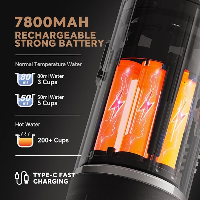 - POWERFUL BATTERY - Portable Electric Espresso Maker: 2-hour full charge (USB-C + fast charger included). Brew 200+ cups with hot water; 3-5 with cold.