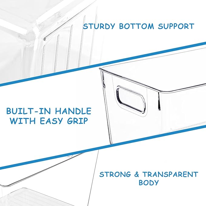 - 【PREMIUM MATERIAL – SAFE & RELIABLE】 Crafted from high-quality BPA-free PETG, these clear plastic storage bins are food-safe, odorless, and highly durable. Ideal for pantry organizers and storage, as well as fridge and kitchen organization, the upgraded material offers superior stability and clarity compared to standard plastic containers.