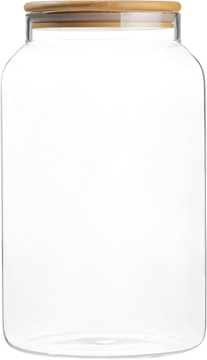 1 Gallon Glass Large Jar with Airtight Bamboo Lid - Strong Clear Borosilicate Canister for Kitchen Food Storage Organizing, Terrarium, Pantry Decorative Container & Laundry Room - Pack of 1
