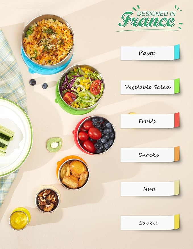 Stainless Steel Food Container with Lids, 6pcs stackable Metal Lunch Box Container for Kids, Daycare, School, Travel | leakproof Sauce Salad Dressing Container to go, From 1.7oz to 33.8oz