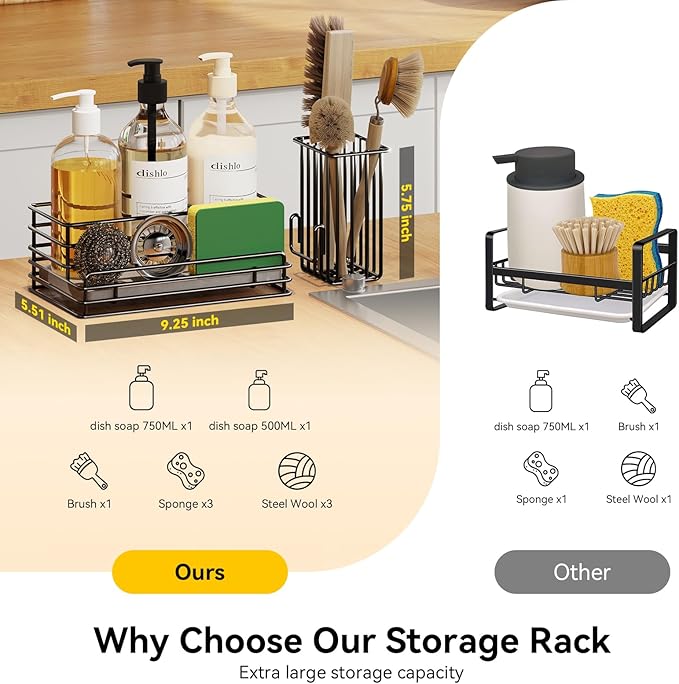 - Anti Slip Sink Rack: Our sink caddy will not slide and can be fixed for a long time without worrying about the sliding and stability of this kitchen sink storage rack.
