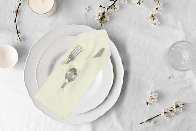 ACCENTHOME Cream Cotton Linen Napkin Set of 6 18x18 inch Dinner Napkins - Washable Soft Premium Hotel Quality Reusable Napkins Perfect Table Napkins for Family Dinners, Weddings & Everyday Use