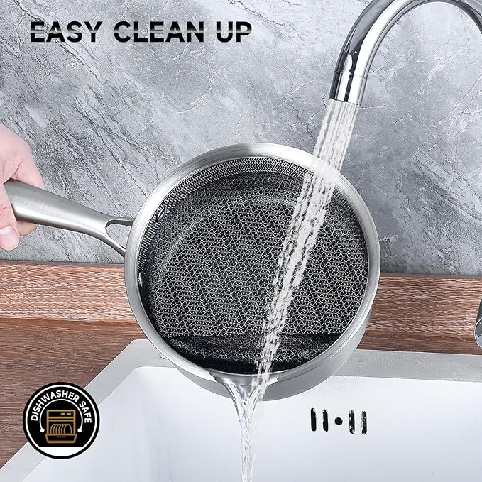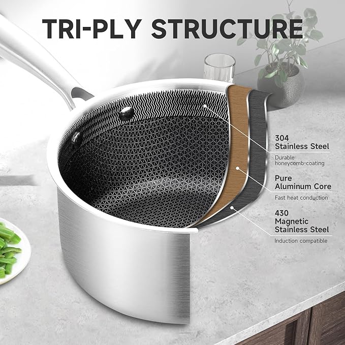 LOLYKITCH 1.5 QT Hybrid Tri-Ply Stainless Steel Non-Stick Saucepan with Lid,Induction Sauce Pot,Dishwasher and Oven Safe.