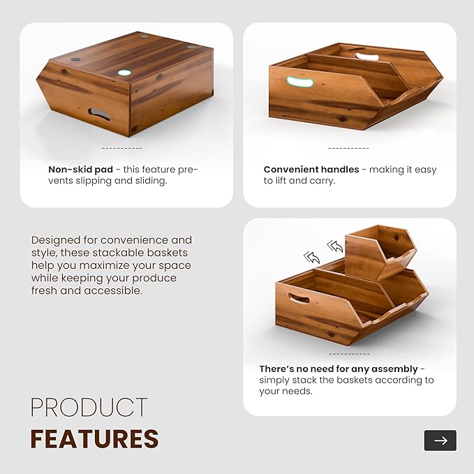HOLANA Onion and Potato Storage Bins - Acacia Wood Pantry Baskets Organization and Storage - Wooden Stackable Baskets for Bread, Fruit, Vegetable - Onion Basket for Kitchen Counter (Patent Pending)