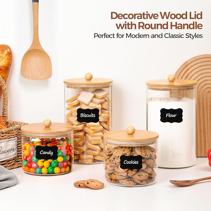 - Versatile Glass Jars: This multifunctional candy jar can store cookie, nuts, sugar, cereal, coffee beans, dog treat, or bath salt for your kitchen or laundry room; Its adaptability makes it an excellent choice for glass containers with lids