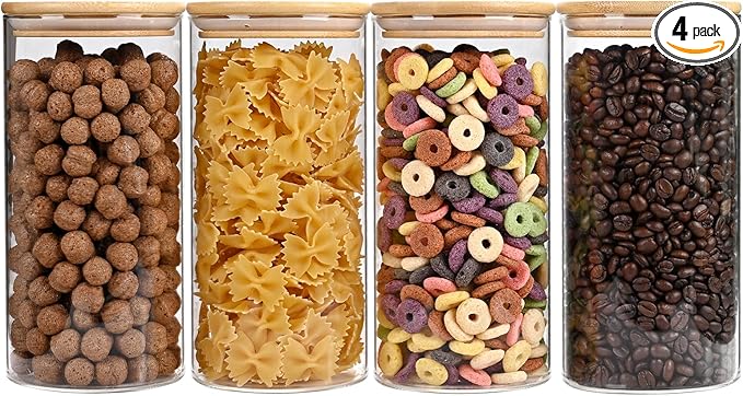 - [Premium quality and safety assurance] Our glass containers with bamboo lids are made of premium quality and borosilicate glass, glass pantry storage containers can withstand the harsh tests of daily use. The bamboo lid provides an airtight seal, ensuring the freshness of stored food. Our glass food storage jars are BPA Free, Phthalate Free, PVC Free, Lead Free, They are healthy and reliable choice for your kitchen.