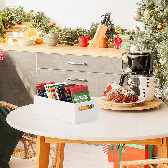 - Seasoning Packet Organizer with Handle: Seasoning packet organizer with 2 built-in handles makes it easy to pull storage bins in and out. The compact design of this kitchen cabinet organizer easily fits into small or crowded kitchen cabinets and pantry shelves, and fits seamlessly into any pantry or kitchen setup