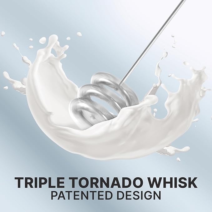 Zulay Kitchen Milk Frother with Patented Tornado Triple Whisk – Handheld Foam Maker for Coffee, Lattes, Matcha & Hot Chocolate – Rich, Creamy Froth in Seconds