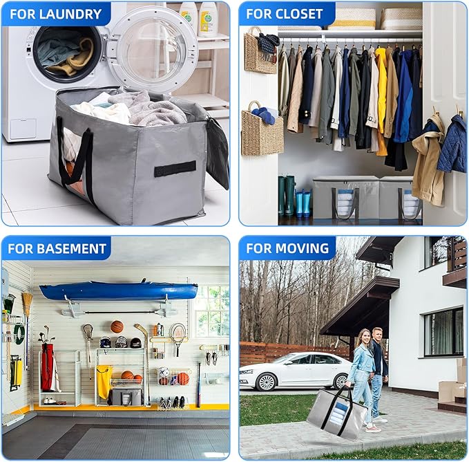 - [Durable & Heavy Duty]: Each extra large storage bags is made from PE woven material, which is tear resistant. Different from other bags on the market, our bags use 3-layer sewing technology to deal with zipper, long carry handles, and side straps, to ensure that the bag body has sufficient load-bearing capacity and tear resistance