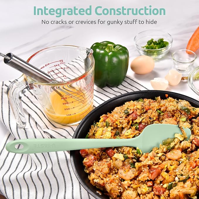 Heat Resistant Silicone Spoon Spatula: U-Taste 600ºF High Heat Flexible 11.38in Silicon Mixing Stirring Cooking Scraping Baking Bowl Scraper, Seamless for Kitchen Nonstick Cookware (Mint Green)