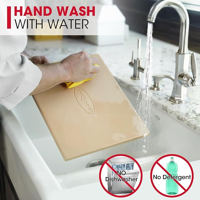- Cleaning and Care: Hand wash with water only. Do not use detergent. A multi-purpose plastic scraper can be used as a dough cutter or to remove residue stuck to the stone. If for any reason our baking stone doesn't meet your expectations, please don't hesitate to contact us