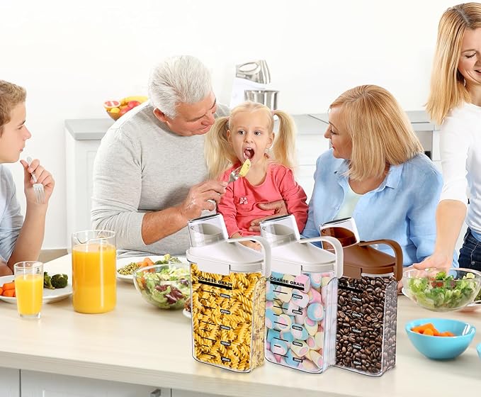 - Upgraded 3-Pack Airtight Food Containers: Organize your kitchen effortlessly! This kitchen dry food storage containers is perfect for cereals, baking essentials, snacks, drink ingredients, and pet food. Crafted from durable PE/PP blend, these containers are thicker, stronger, and long-lasting. Say goodbye to clutter, enjoy cooking!
