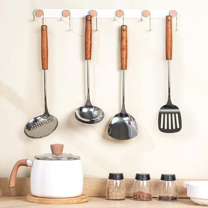 - Easy to clean spatula : Mirror kitchenware will not leave food grease ; Wooden handle with round hanging hole also easy to dry and hang