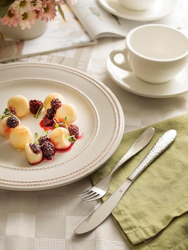 - Versatile for Any Setting – Whether it’s a weekday dinner or a festive celebration, this matte-hammered flatware set brings refined craftsmanship to the table.