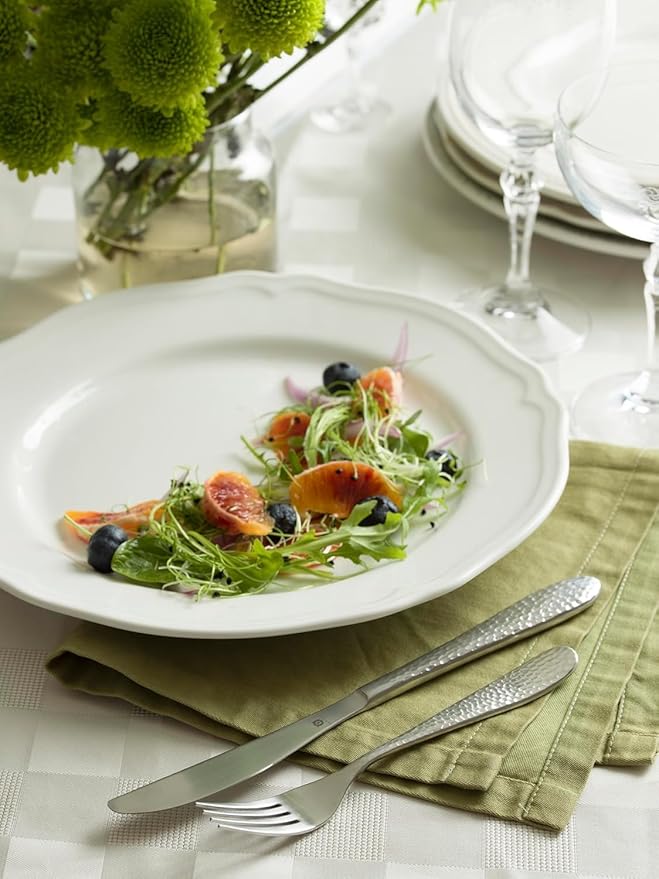 - Complete Matte-Hammered Silverware Set for 8 – Includes 8 dinner knives (9 1/8”), 8 dinner forks (8”), 8 salad forks (7 2/8”), 8 tablespoons (8”), and 6 teaspoons (7 3/8”) – thoughtfully sized for everyday meals and special occasions.