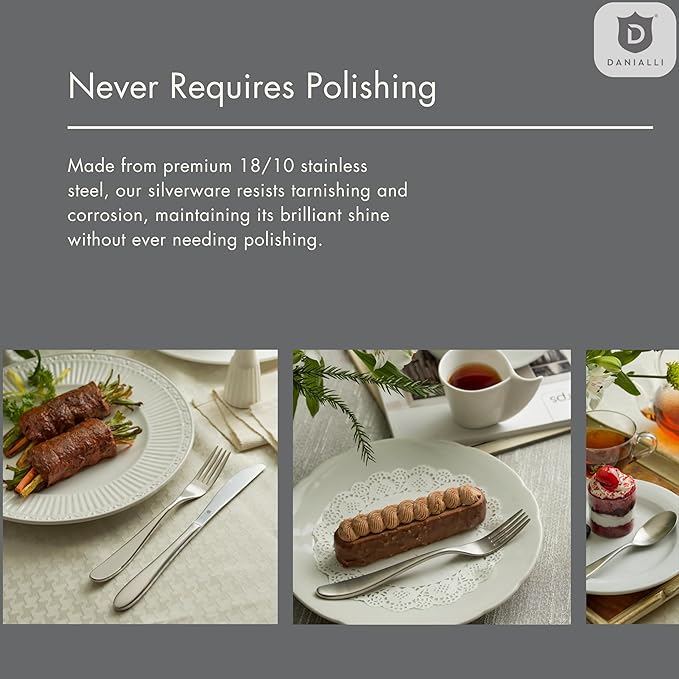 - The Heaviest in DANIALLI’s Collection – Crafted from solid 18/10 stainless steel, each piece offers a hefty, well-balanced grip you’ll notice the moment you pick it up.