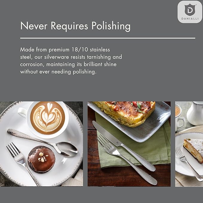 - Dishwasher Safe Convenience: Enjoy easy maintenance without sacrificing elegance. This 18/10 stainless steel set is completely dishwasher safe—resistant to tarnish, fading, or spotting, even after repeated washes.