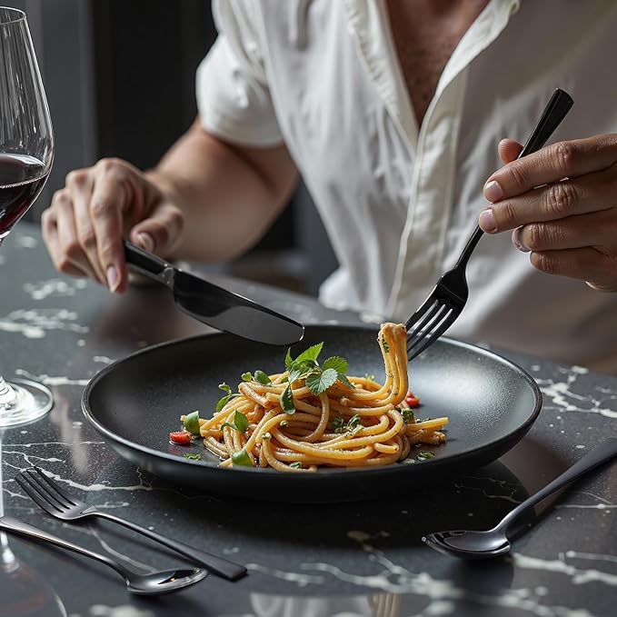- Sleek and Modern - KINGSTONE stainless steel cutlery set features sleek lines and contemporary sihouette, simple and elegant design, will fit into any kitchen. The slightly thicker handle, making it easier to hold on to, allowing you to enjoy a seamless dining experience with every use.