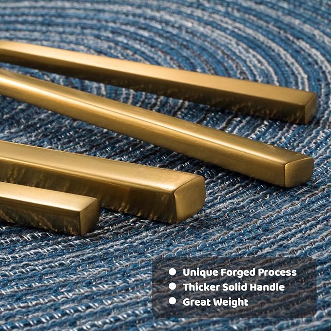 Alata Cube Gold 45-Piece Flatware Set, Forged Cutlery Set, Matte Gold Silverware Service for 8, Stainless Steel Tableware with Square Handle for Home/Restaurant, Dishwasher Safe