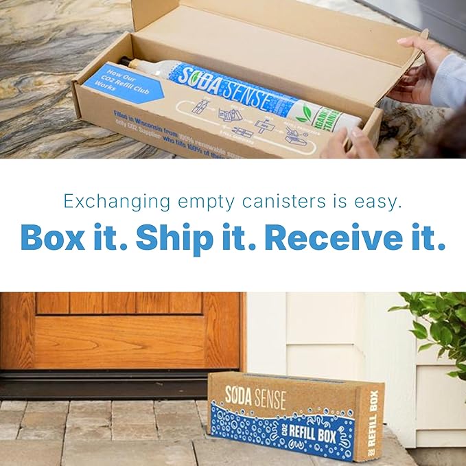 - [Sustainable Carbonation] At Soda Sense, we’re proud to source 100% of our CO₂ sustainably right here in the USA. Each of our 60L canisters prevents over 170 single-use plastic bottles from ending up in landfills or oceans.