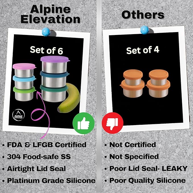 - Perfect Fit: Use Alpine Elevation stainless steel condiment containers for dips and sauces, or as metal snack containers for any adventure. Your ultimate stainless steel dip container!