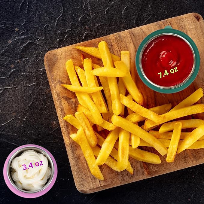 - Two Perfect Sizes for Snacks & Dips: Stainless steel containers in 7.4oz and 3.4oz sizes, ideal for dips, snacks, sauces, and small portions.