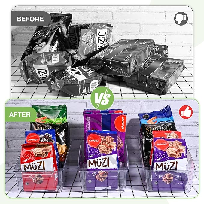 - Removable Dividers:There are 3 removable dividers in each food storage organizer bin, making it easy to separate and organize your items, you can quickly see and grab what you need.Pantry organizer bins will be a good choice as organizer bins to store and organize medicine, snack, spice packets,seasoning packets, tea packets, instant food packets