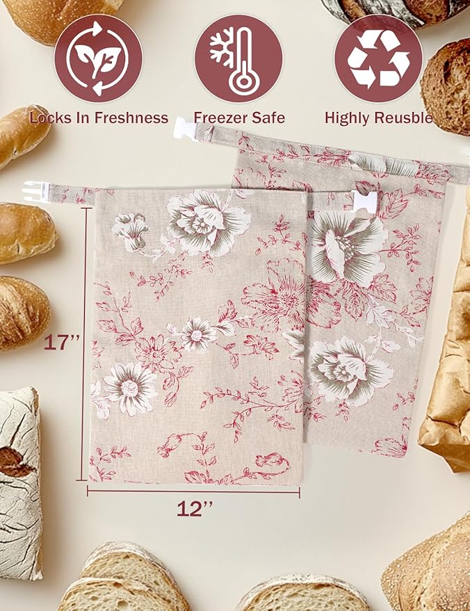 - Perfect Gift - Reusable bread Bags is 12.5” x 16”, which is perfect for storing round bread and sourdough. Surprise your loved ones with a practical and environmentally friendly bread bag and enjoy a pleasant baking time