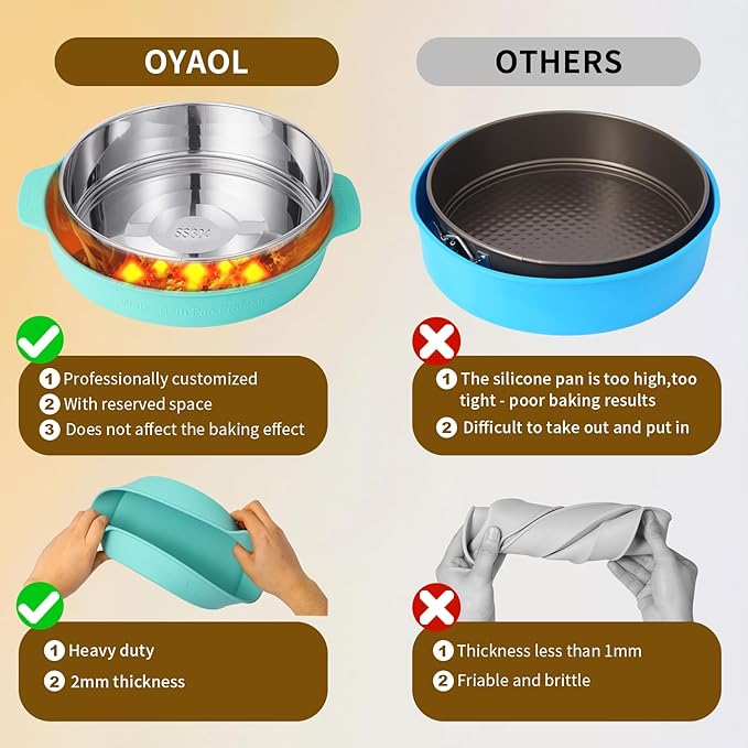 - UNLOCK ENDLESS BAKING POSSIBILITIES: OYAOL 4, 7, 9 Inches Nonstick Springform Pan Set with a Silicone Cheesecake Pan Protector, for Baking Cheesecake, Lasagna, Deep Dish Pizza, Quiches, Tart, and Casseroles