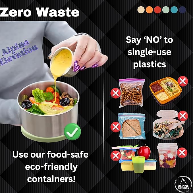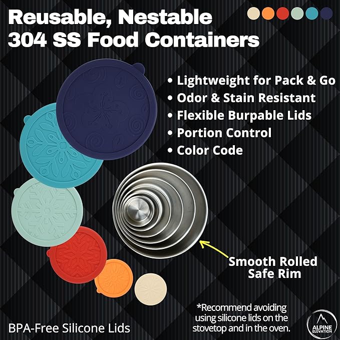 - Ease of Use: Alpine Elevation's stainless steel containers with lids are fridge, freezer, and top-rack dishwasher safe. Their smooth design prevents food from sticking, making cleanup a breeze!