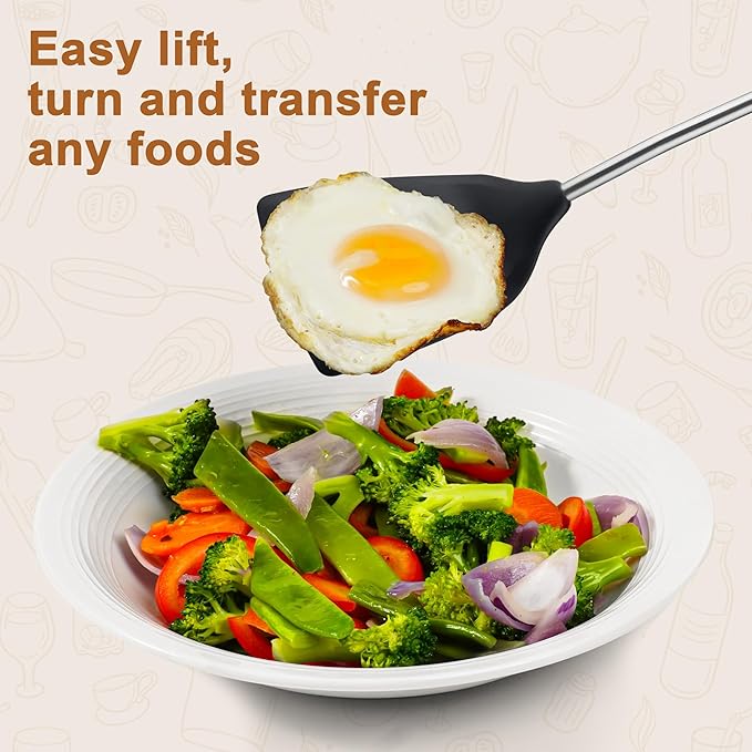 - Easy to clean silicone spatula : Black silicone will not leave food grease ; round hanging hole also makes it easy to dry and hang