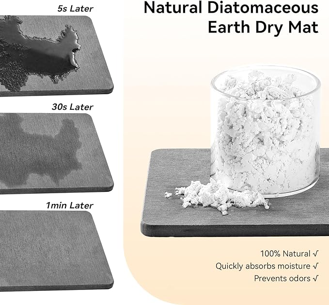 - 【Natural Bbsorbency】The bottom is made of natural diatomaceous earth and plant fibers, and the small holes in the diatomaceous earth give it amazing water absorption. They can absorb moisture and dry out in a few minutes