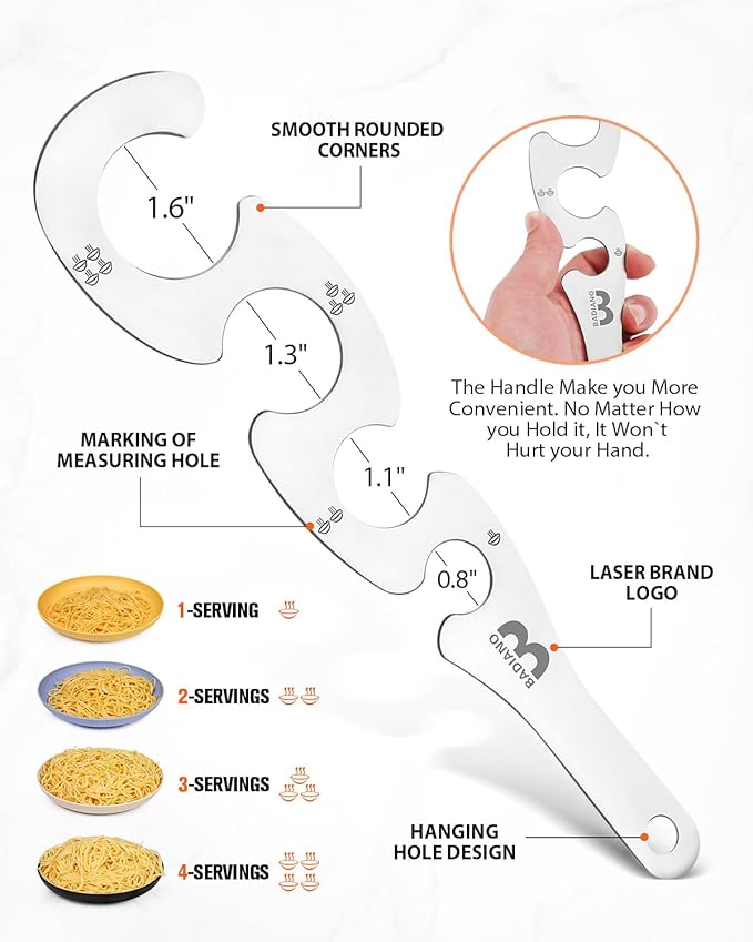 - Precision Measurement: Pasta Measurer have 4 measuring holes of different sizes, recommended weight: 1 portion 2 oz, 2 portions 4 oz, 3 portions 6 oz, 4 portions 8 oz, can choose any one as your needs