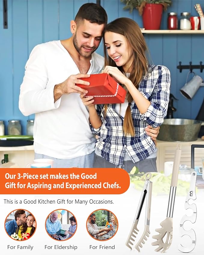 - Silicone Pasta Tong: BPA-free food-grade silicone ensures safety. Tooth-shaped heads make spaghetti pickup effortless