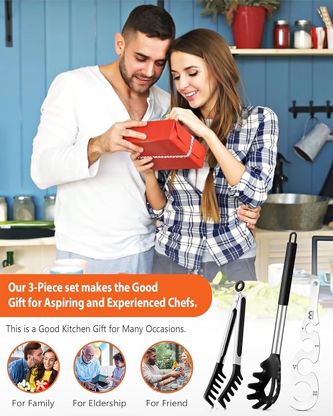 - Silicone Pasta Tong: BPA-free food-grade silicone ensures safety. Tooth-shaped heads make spaghetti pickup effortless