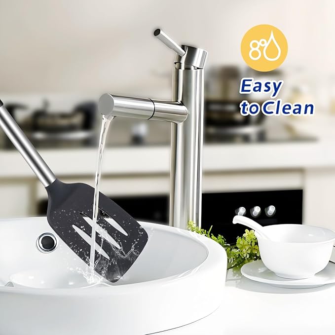 - Easy to clean: Only need to wash the kitchen utensils after use or put them in the dishwasher. Stainless steel handles with a smooth silicone surface that does not oxidize and discolor over time