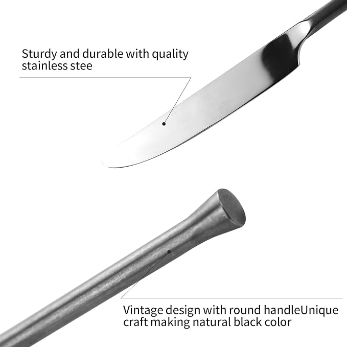 Silverware Set Flatware Set Stainless Steel Cutlery Set Vintage Black Handle Mirror Finished Heavy Duty 20 Pieces Service for 4